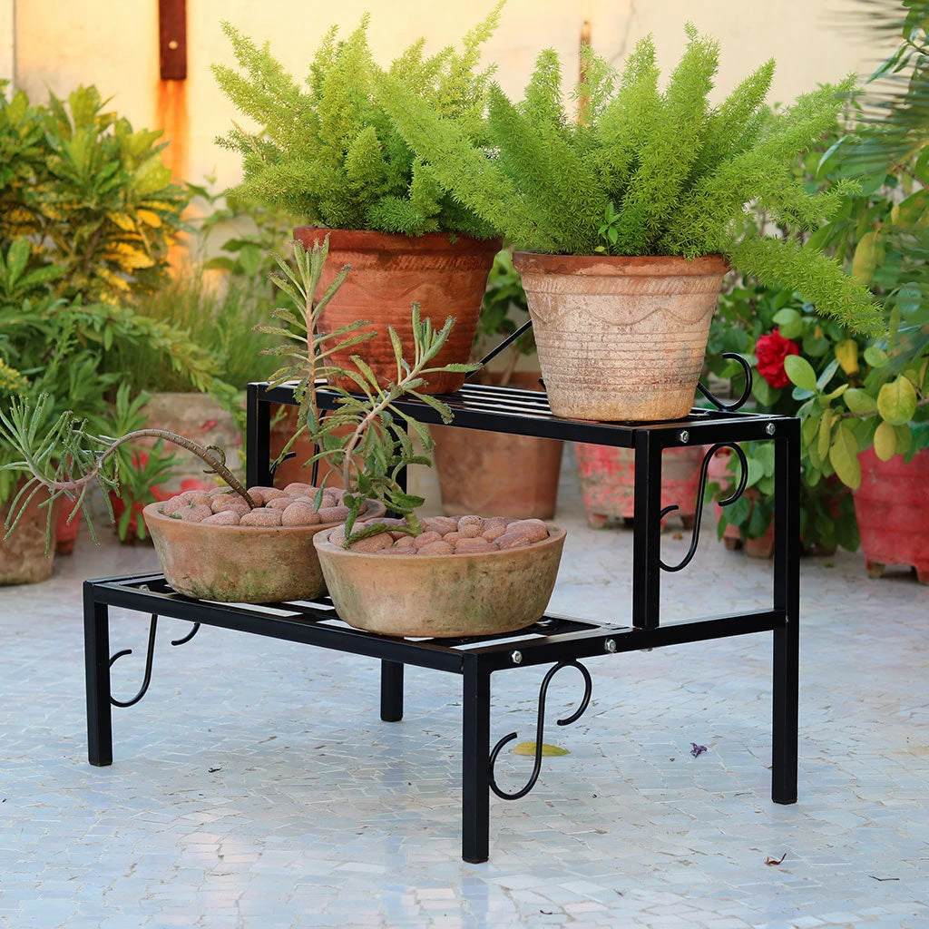 A beautiful and spacious 2 tier steps metal stand. Designed to take a good amount of weight without any hassle. Suitable for plants indoor/outdoor/terrace/balcony gardens.