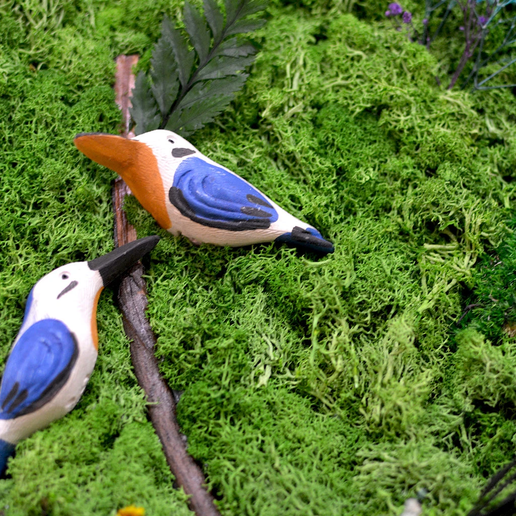 Ingredients : PreservedΒ Reindeer Dyed Moss, Terracotta Kingfisher Birds, Baby Breath, Wooden Stick