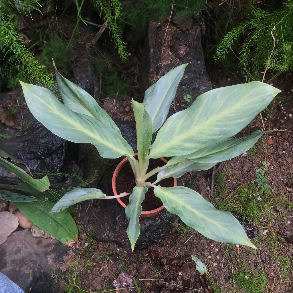 Aglaonema Silver Plant is evergreen perennial herbs with stems growing erect or decumbent and creeping. Stems that grow along the ground may root at the nodes. There is generally a crown of wide leaf blades which in wild species are often variegated with silver and green coloration.They are slow growing and will only need repotting every other year. Aglaonema are generally low-growing plants that will only very gradually reveal their trunks.