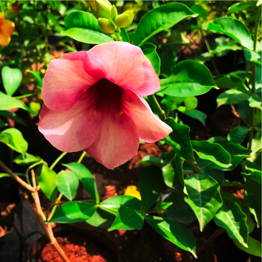 In temperate regions, allamanda may be grown outdoors in containers during the summer months and brought into a greenhouse or conservatory to over-winter. They require full sun and fertile, well-drained, acidic soil for best growth. Though somewhat drought tolerant, they look and grow best with evenly moist conditions.
