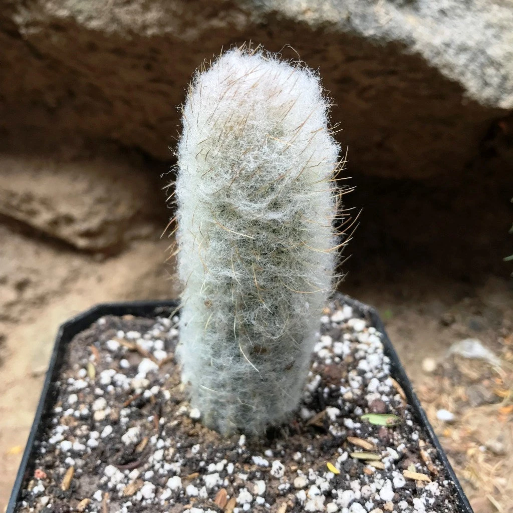 Austrocephalocereus dybowskii also known asย Cephalocereus dybowskiiย is a night blooming cereoid species, mainly branching near the base. It is a hairy and wooly columnar cactus that has fine spines and white hair. The flowers are white, tubular and bell shaped.