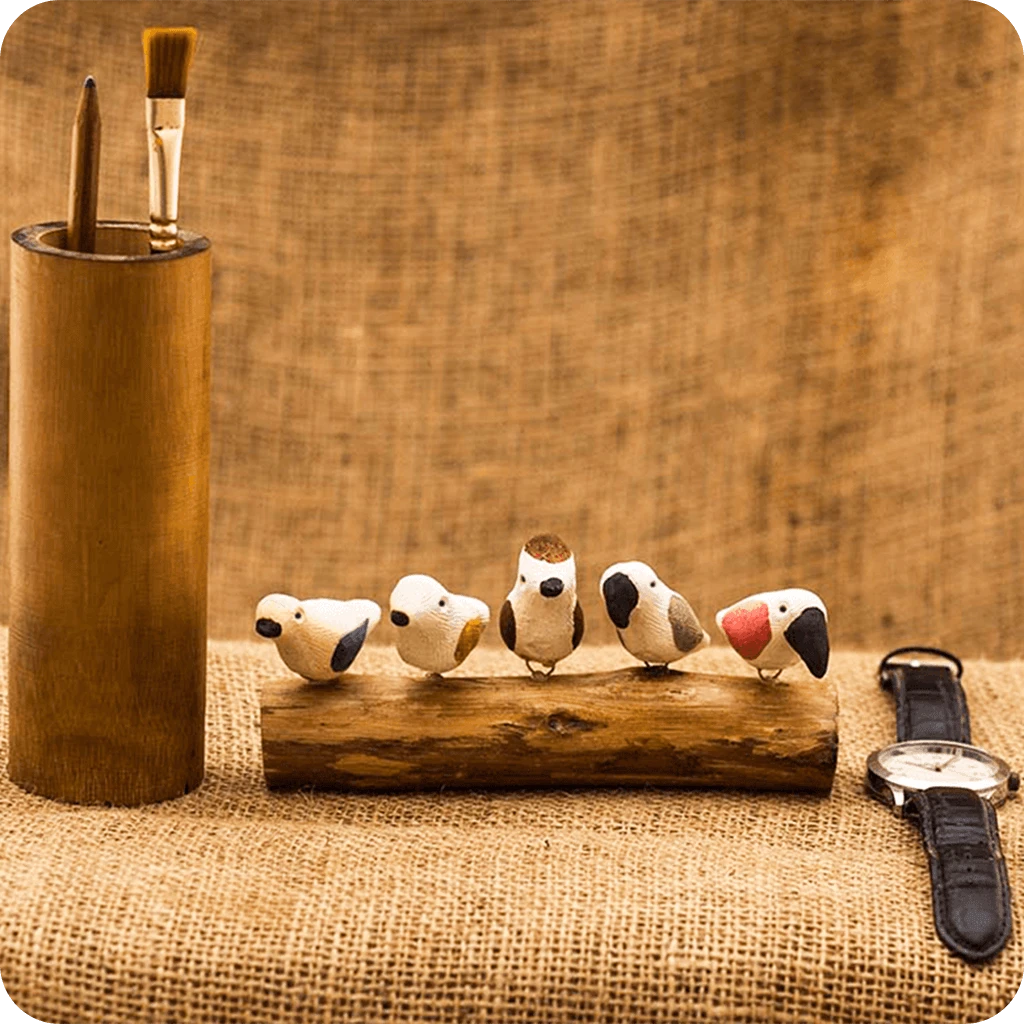 The finest of thanghadh clay moulded beautifully into a range of wire friendly birds that defines simplicity and endless appreciation to our surroundings. It is weather proof, hence is suitable for interior as well as exterior garden decor. These birds come set in a treated wood stand, ready for you to place them in your desired spot!