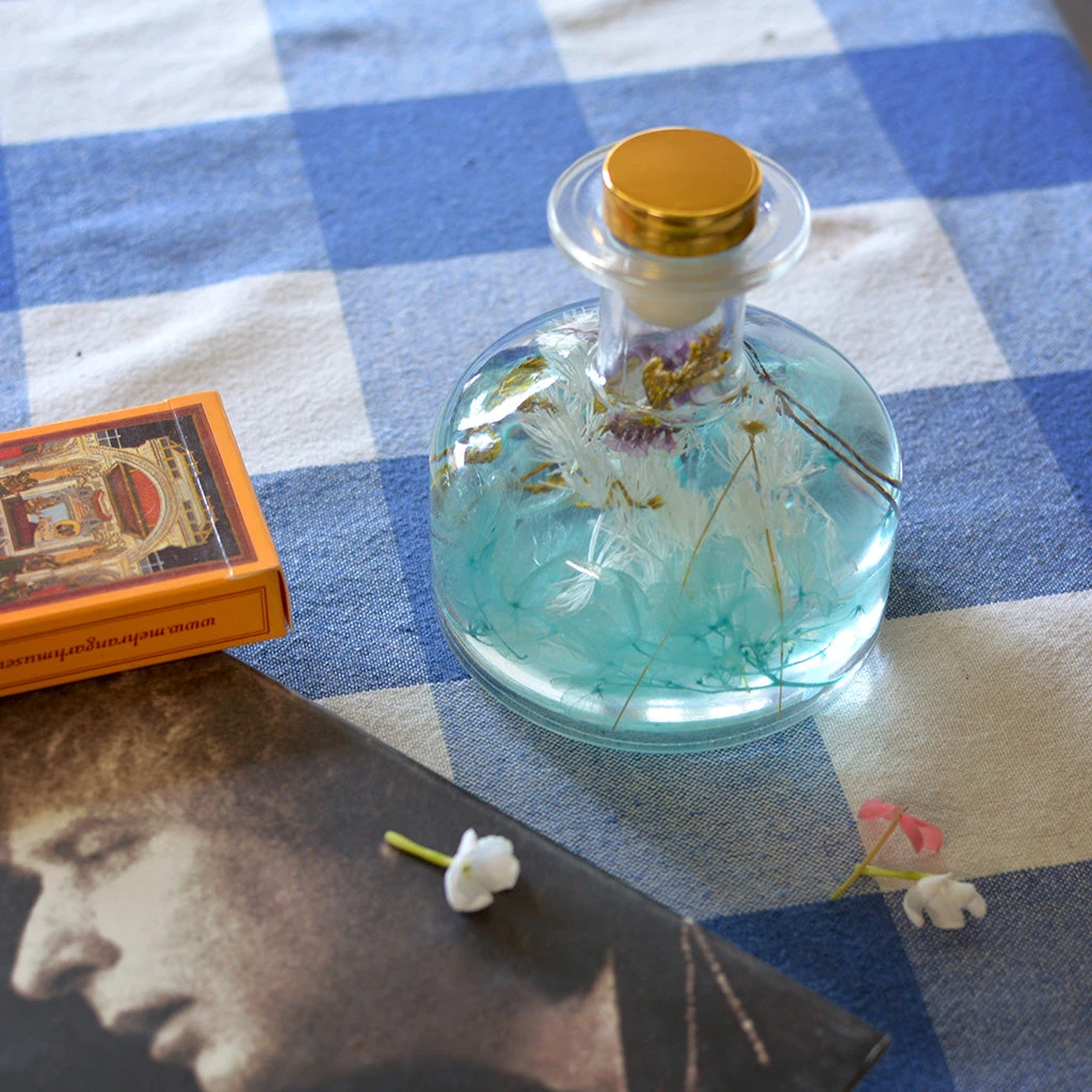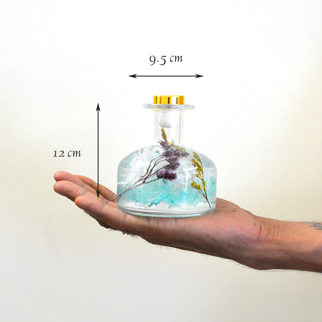 Material Used : Glass Bottle with Cork, Hydrangea, Forget Me Not’s
