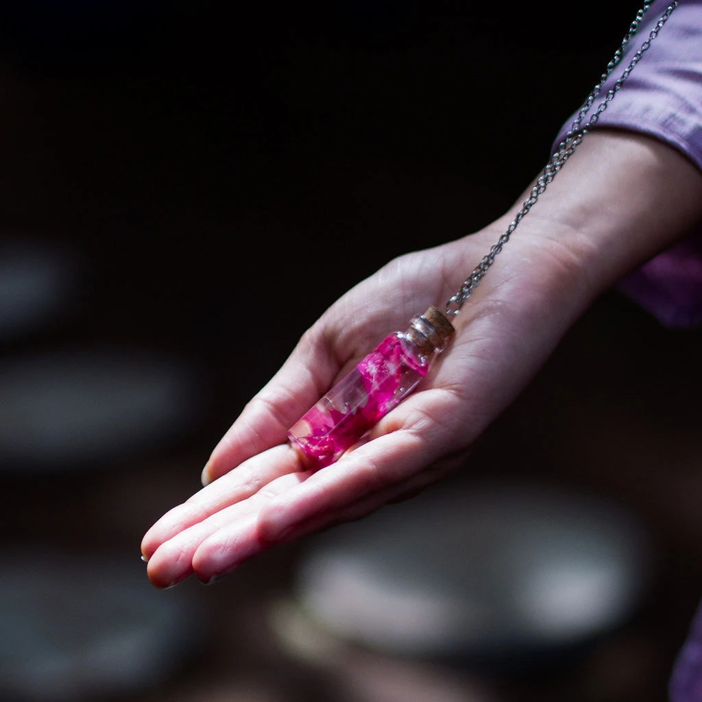 Our bougainvillea vial necklaces have bright bougainvillea encased in a glass vial filled with resin. The cute lockets are colorful and elegant.