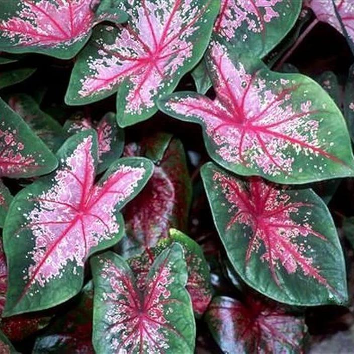 Caladiums are excellent choices to add colour, texture, and form to shady areas, making them a standout in your garden or containers. These plants are ideal border plants, lovely in window boxes and stunning when planted in a random mix in beds. These plants are the perfect solution for brightening a shady porch or a covered deck. Can also be used to decorate your entryways and mailboxes.