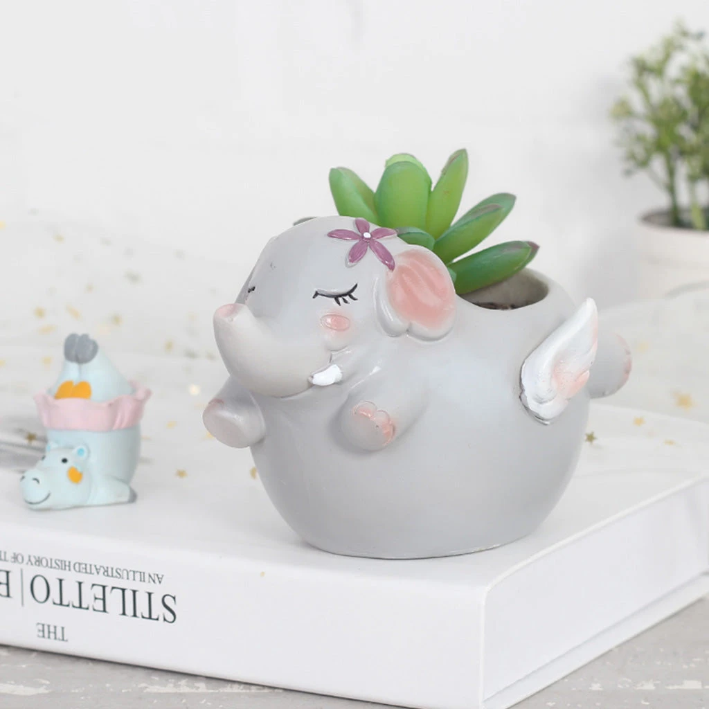 Cute Flying Elephant Resin Succulent Pot is a perfect decorative pot for your beautiful plant. Made out of resin, this pot is an ideal piece for your home as it is perfect for indoor or outdoor use! Durable and Anti Corrosion, this pot makes for a visual delight! Perfect for gifting too!