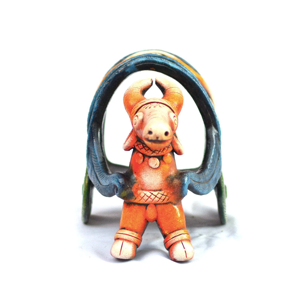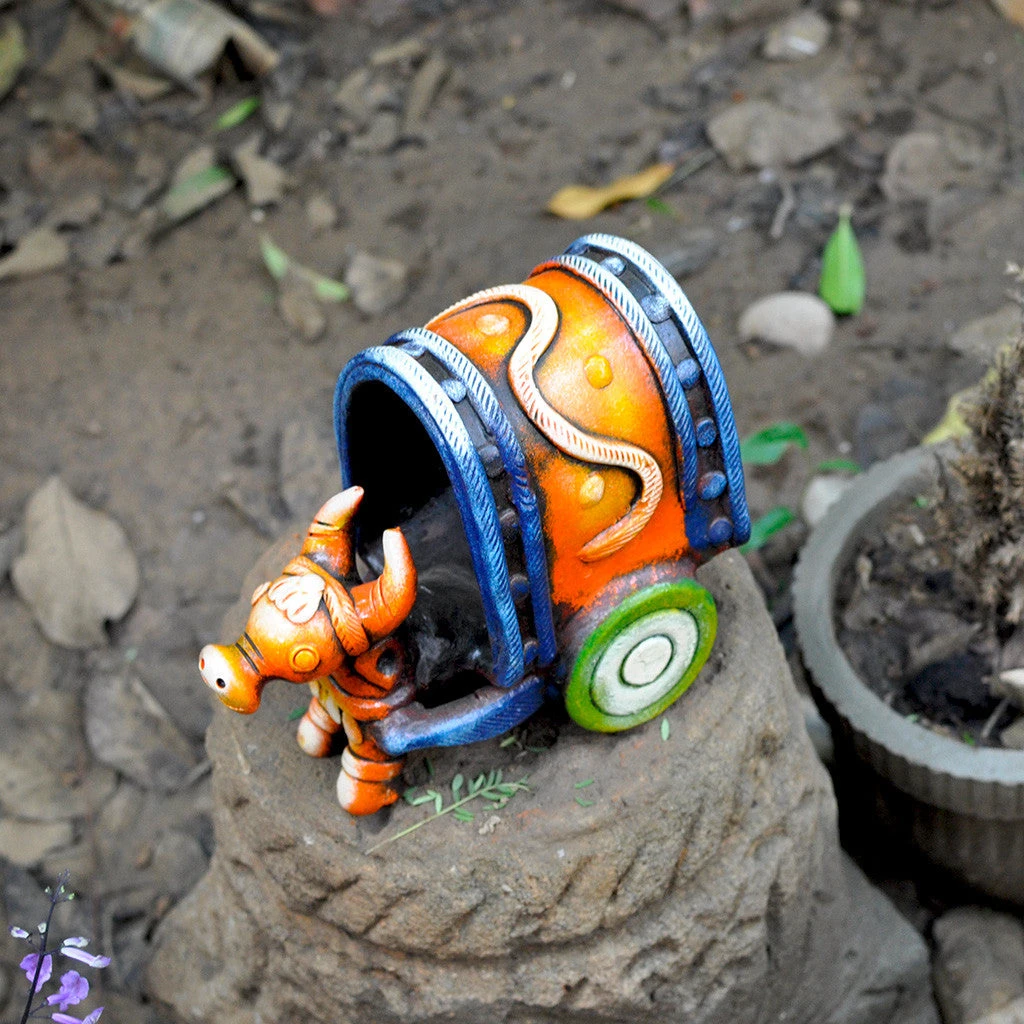 This hand-painted terracotta bullock cart is made by rural artisans! Add a dash of colour to your home decor with this absolutely gorgeous decorative piece. This decor gives a Rural cultural touch to your home!