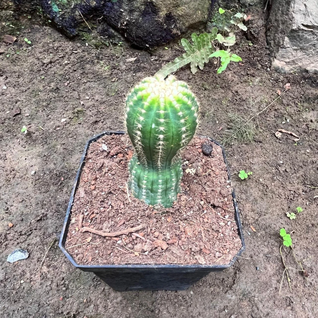 Echinopsis ‘Cupcake’ is a charming globular to columnar cactus known for its plump, ribbed body and neat arrangement of white spines. The body is bright green, with vertical ridges that give it a ribbed cupcake-like form—hence its name. Over time, it may grow taller while maintaining a rounded top.