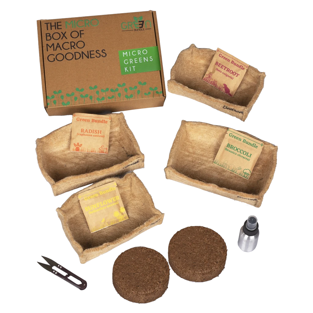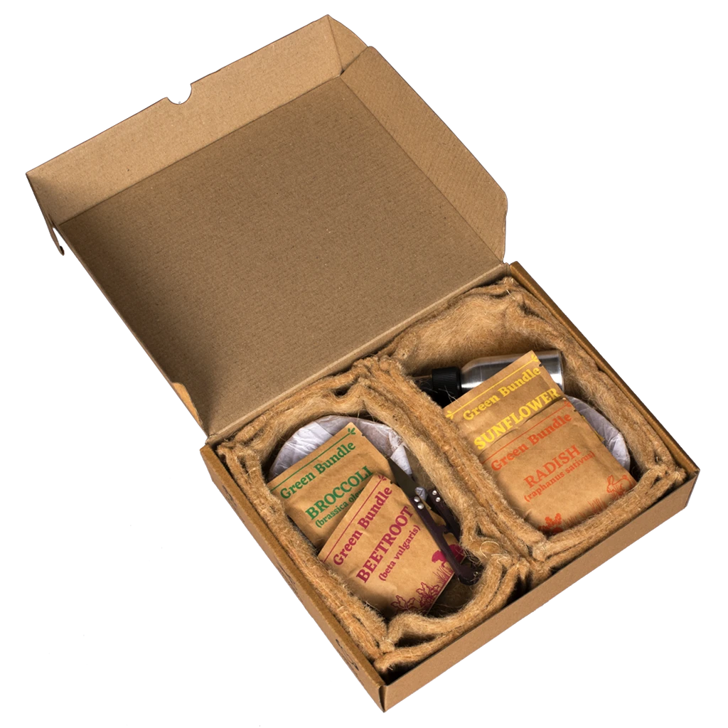 Greenbundle Microgreen kits come with the Jute base trays, which is very eco-friendly. Light in weight, easy to use, these kits make for a perfect introduction as to how to grow microgreens for your family . Apart from that, it’s natural raw look makes it a must have for your garden.
