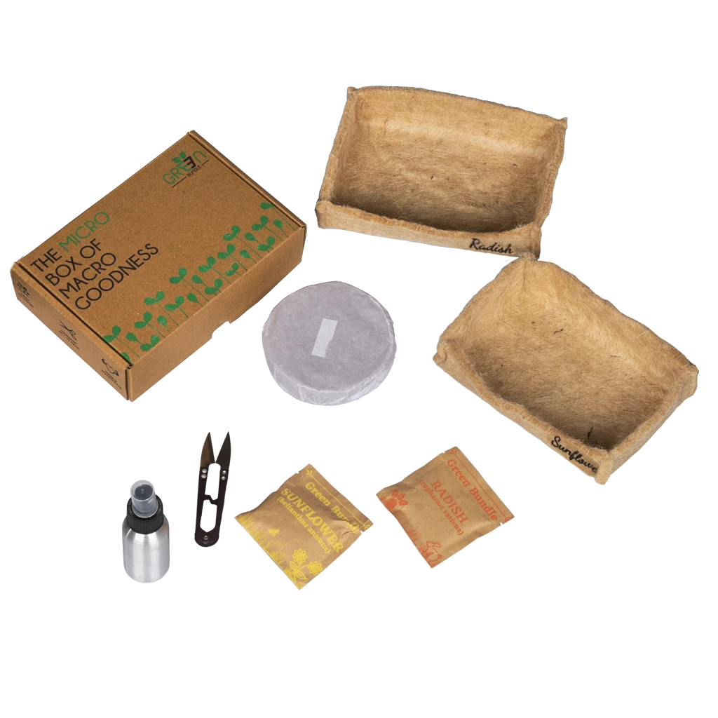 Greenbundle Microgreen kits come with the Jute base trays, which is very eco-friendly. Light in weight, easy to use, these kits make for a perfect introduction as to how to grow microgreens for your family . Apart from that, it’s natural raw look makes it a must have for your garden.