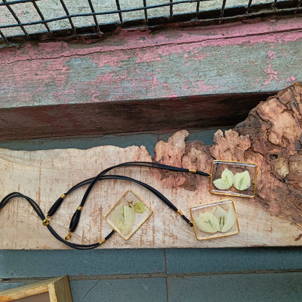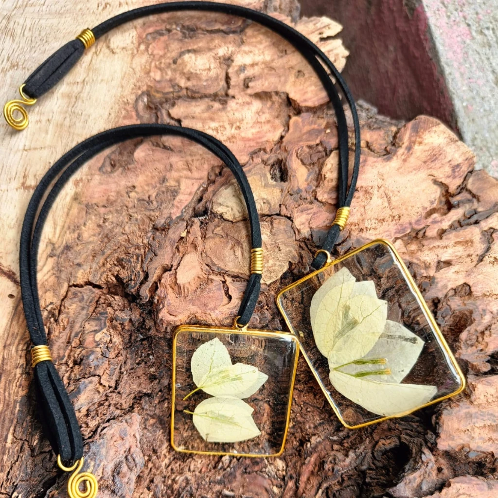 Material – Bougainvillea, Resin, Metal Wire, Wooden Bead & Rope
