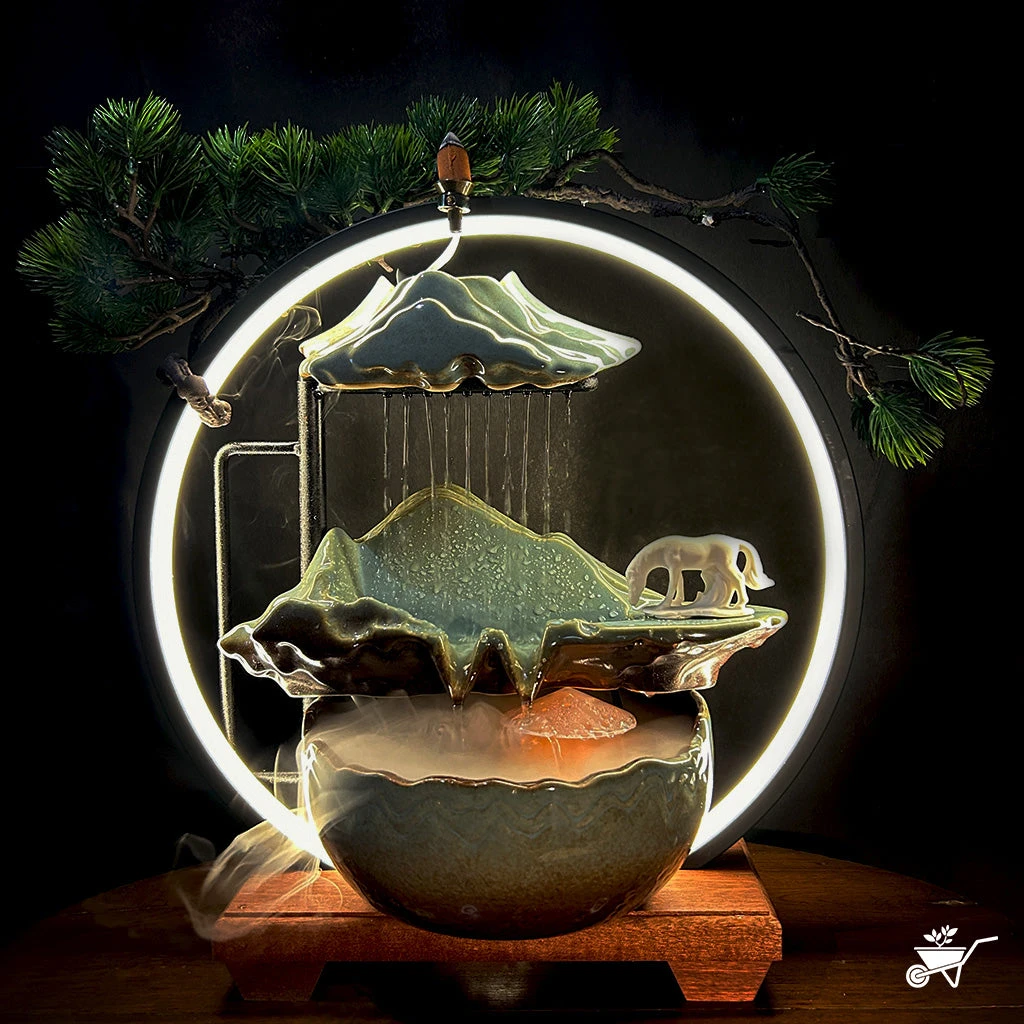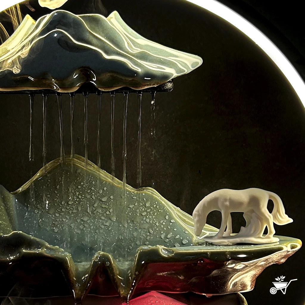 Bring the calming essence of nature indoors with the Ethereal Streams Horse Water Fountain. This stunning Zen garden features a graceful horse drinking from a serene, cascading waterfall, capturing the peaceful harmony of the wilderness. The soft LED lighting adds an ethereal glow, enhancing the natural beauty of the scene and creating a soothing ambiance perfect for any space.