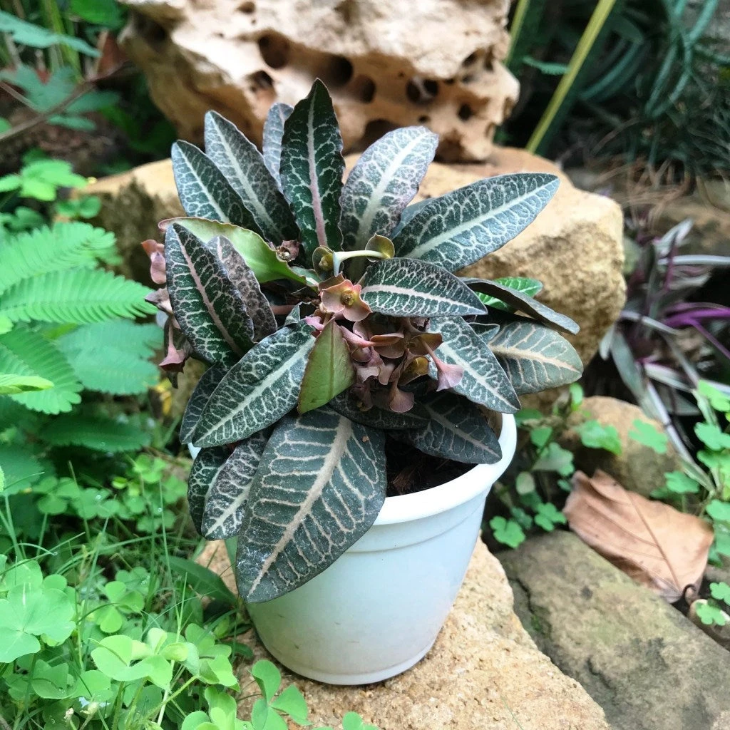 Description : Euphorbia francoisiiis is a small caudiciform plant, up to 6 inches (15 cm) tall, that has the most variable leaves in the plant kingdom. No two plants have the same leaf shape or color, even if they are clones. The new leaves emerge as new shapes and colors, completely unpredictable. They are up to 3.2 inches (8 cm) long and up to 1.2 inches (3 cm) wide. Colors can range from dark-green, pink, purple, white, and variegated. Flowers are yellowish-green to pinkish and appear in the late sprint to early summer.