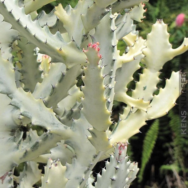 A white- cream colored species, E.Lacteal Variegata is very famous for its unique chlorophyll devoid property as well its distinct look. This produces dense, thick triangular stems which grows up to 3 -6 m tall.