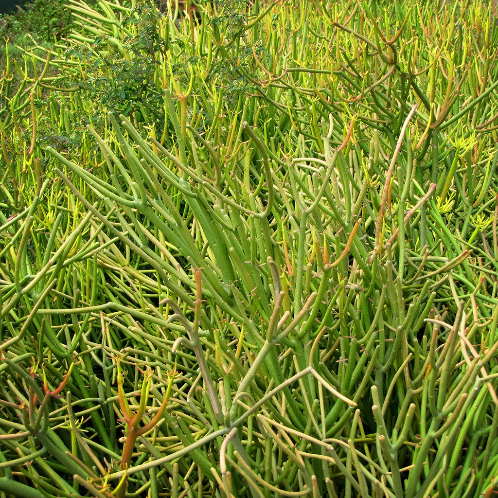 Sticks of Fire, more traditionally called Fire Stick Euphorbia, are some of the most unique and wonderful desert native plant specimens around. Sticks of Fire have such a unique color and structure, it’s practically a coral reef for desert landscapes. The Sticks of Fire maintain an orange and green color during most months, but turn fiery red in the winter, then returning to a lighter green in the summer. This color display is an unusual but welcome sight in the winter when most desert landscapes are lacking in extravagance.