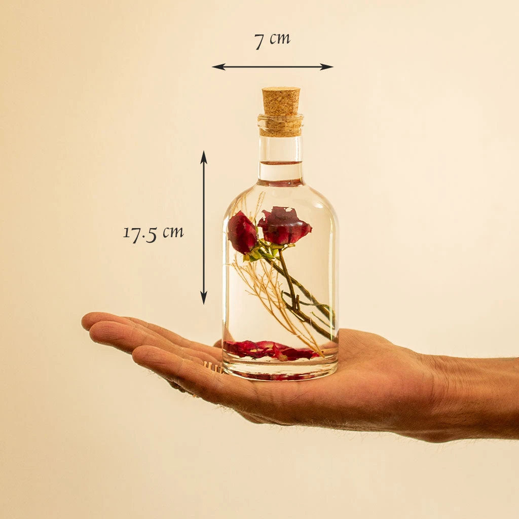 Material Used : Glass Bottle with Cork, Rose, Brown Grass