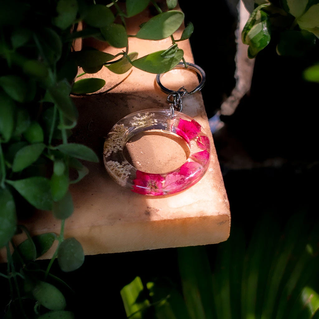 Floral Fraction Keychain has a beautiful divide of hues and flowers. Celebrate the love for nature with this exquisite and elegant keychain with natural flowers.