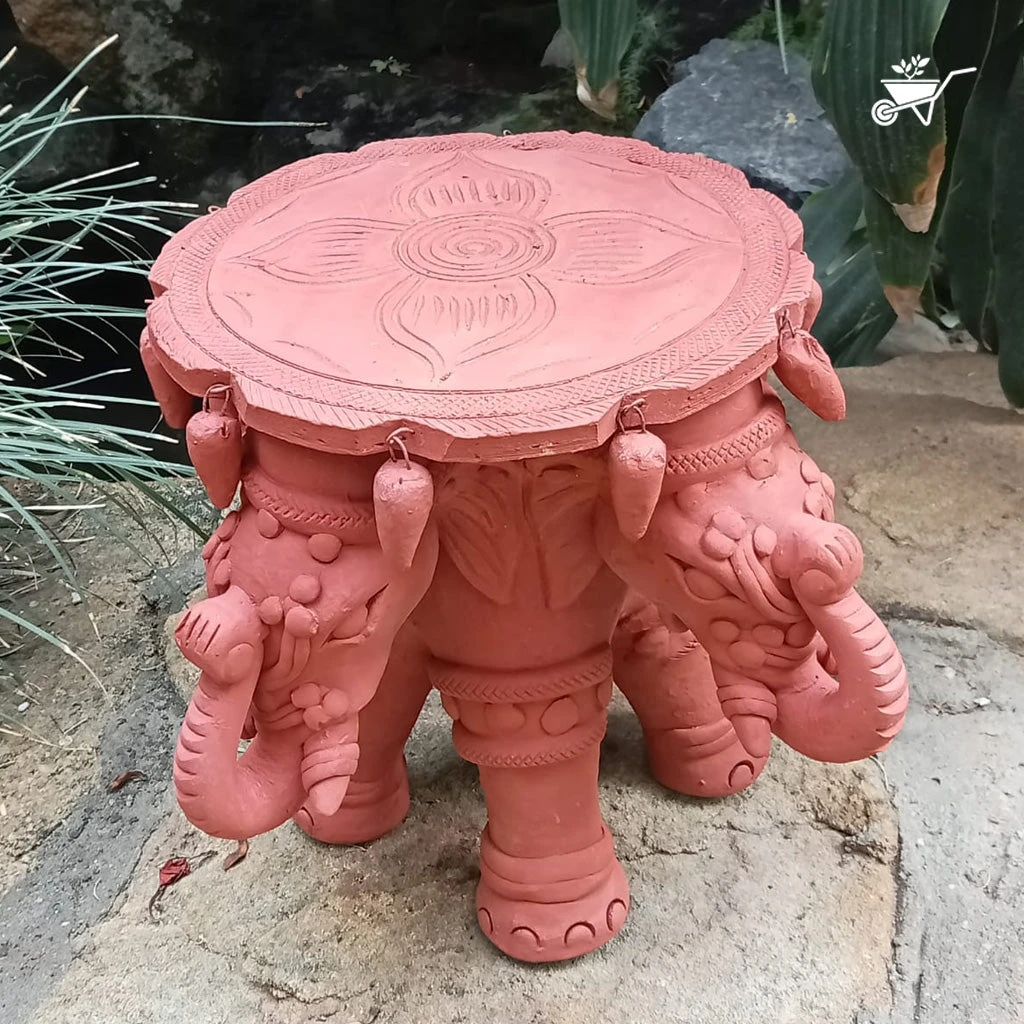 A beautiful terracotta made stand with elephant heads on four sides makes for a serene decorative piece for your home! Use it as a pot stand, a book keeping table, stool, or whatever you wish, it is going to be a vibrant addition! This one is a must have for all elephant lovers!