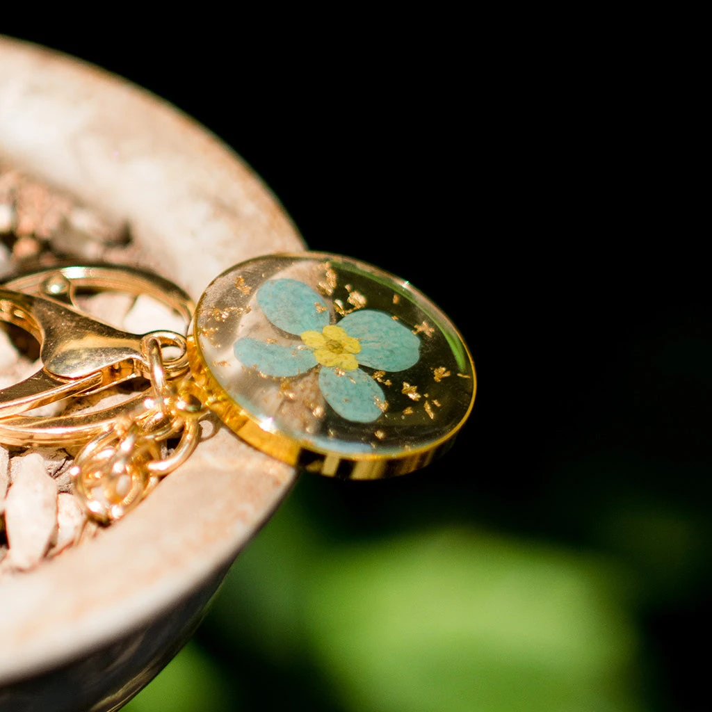 Frizzy Dazzle is a magical combination of the blues and yellows making it a warm and fuzzy design. Celebrate the love for nature with this exquisite and elegant keychain with natural flowers.