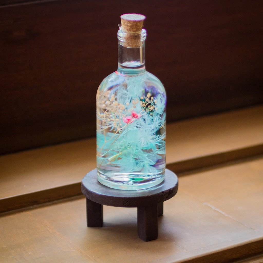 Material Used :ย Glass Bottle with Cork, Hydrangea,ย Baby’s Breath, Lucky Charm