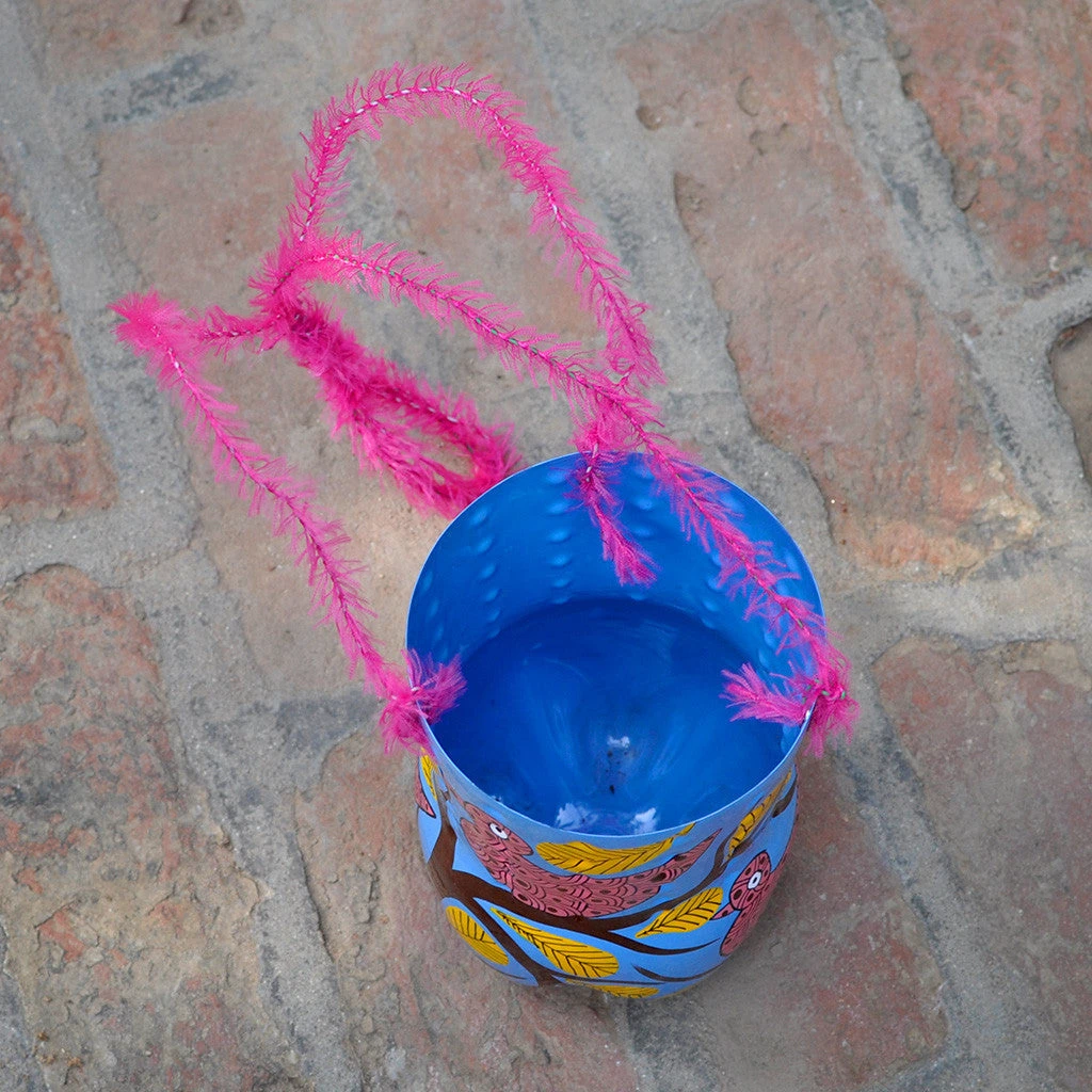 Blue Bird themed vertical planters made out of plastic bottles with string artistically made of LAN wire and ribbons. Suitable for plants whose roots grow vertically such as money plant.