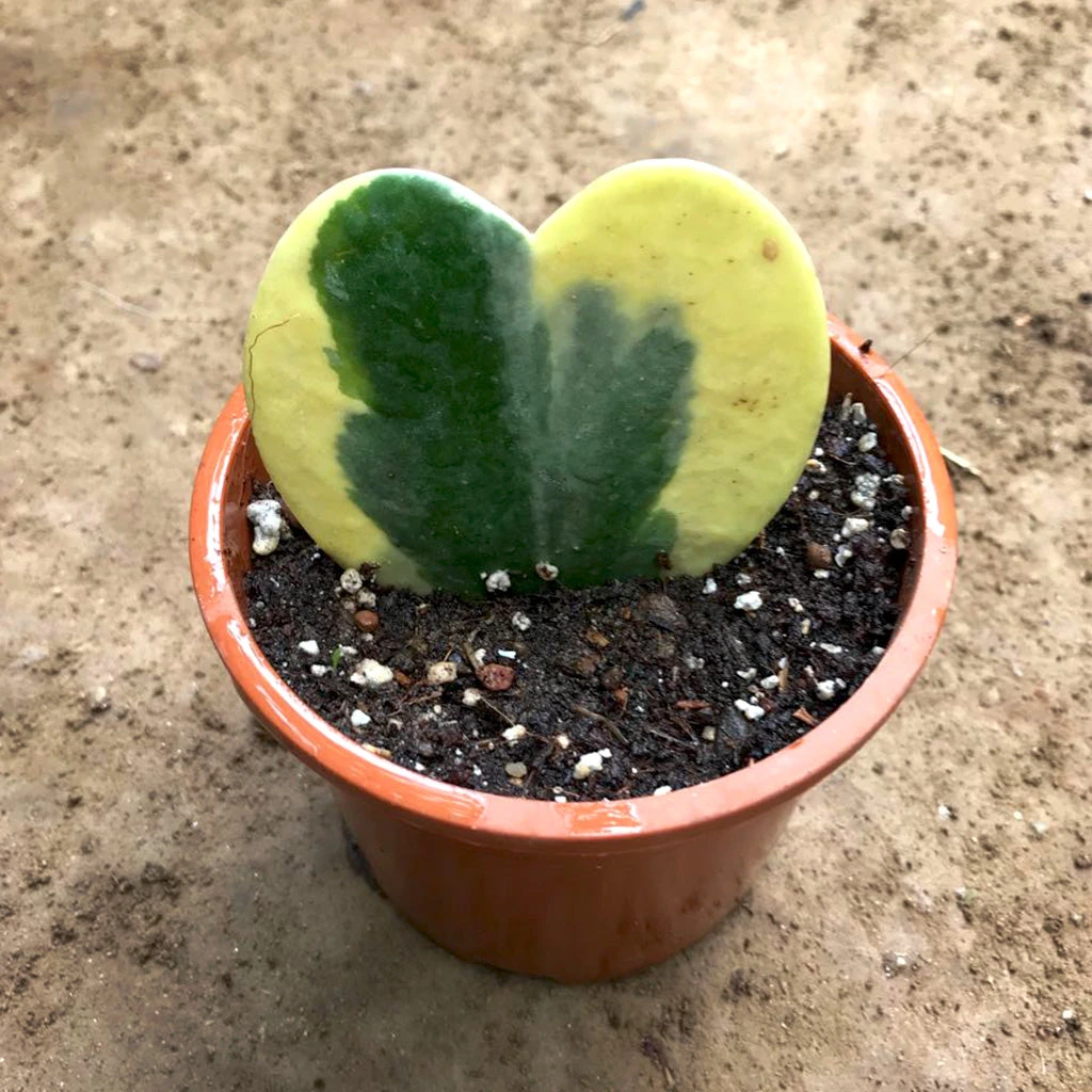 Hoya kerrii is a climbing plant that can grow up to 4 meters high (around 13 feet). Stems have a diameter of 7 mm. The leaves are 6 cm wide, 5 mm thick. Adult plants show inflorescences of 5 cm diameter and up to 25 flowers. They produce small balls of nectar, coloured red to brown. They smell only faintly or not at all. The heart-shaped plant looks like a thornless FLOWulent or cactus.