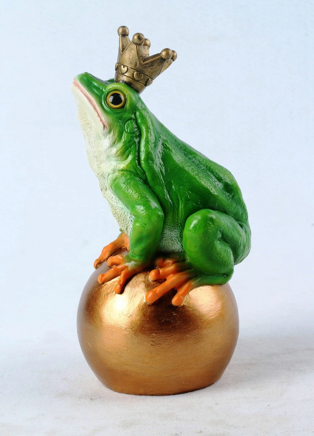 King frog sitting on Golden Ball for your home, balcony or garden. This handsome king frog with a crown on its head comfortably sitting on a golden ball is very colorful and animated and will surely bring a smile to every one’s face. It will brighten up any corner of surroundings. This is made of very tough polyresin with special coating of paint to make it weather resistant. Hence, it can be kept inside or ourside your home in kids room, living room, garden, balcony, terrace or any place and its colors will not fade because of sunlight or dust or water or pollution. Excellent gift.?ß