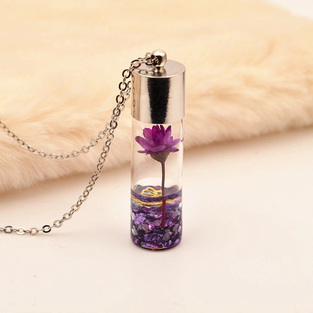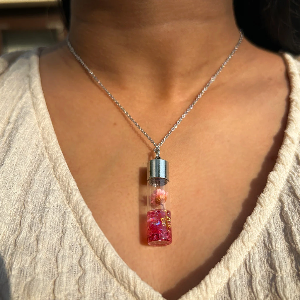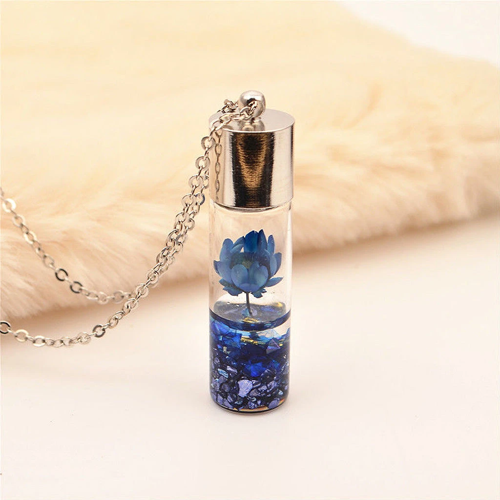 A Lotus blooming and displaying its radiance is all what the Lyrical Lotus Necklace is about! Encased in glass, this necklace looks serene and an eye pleaser!