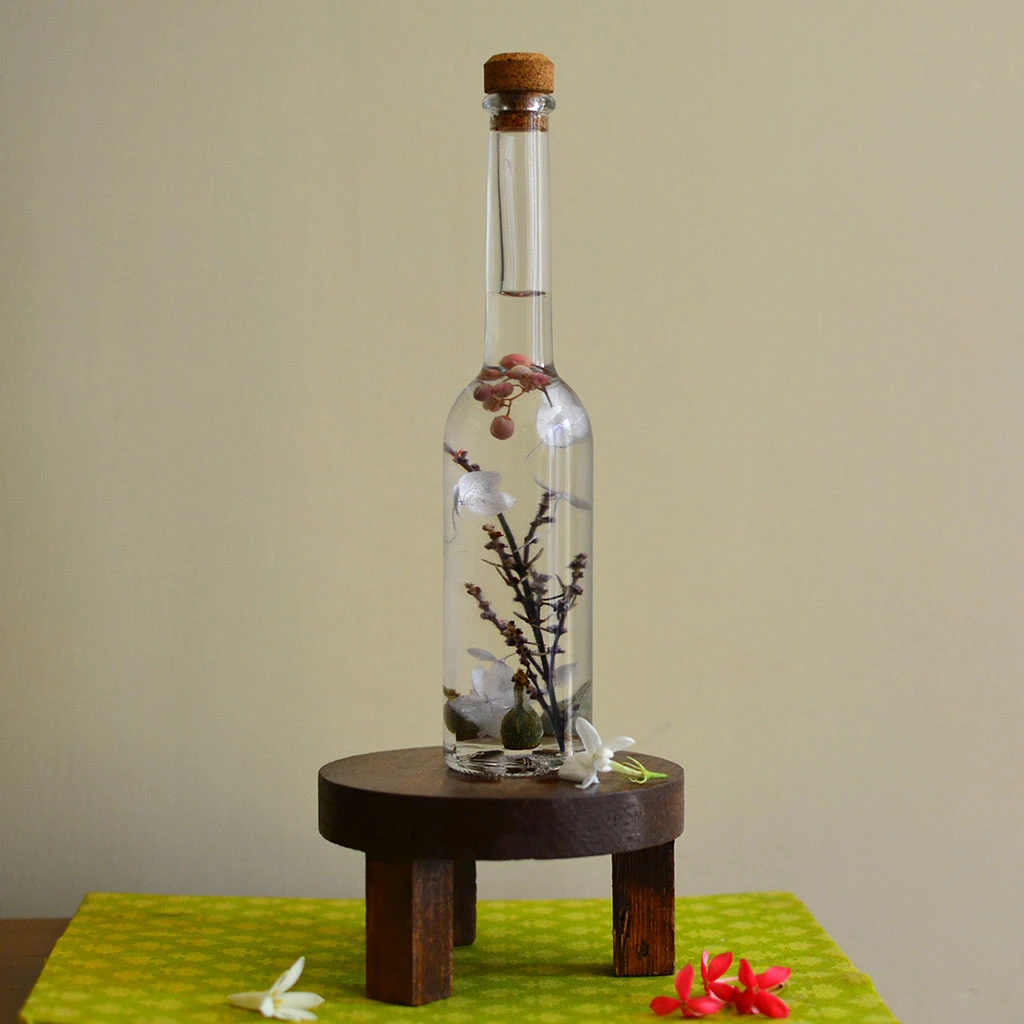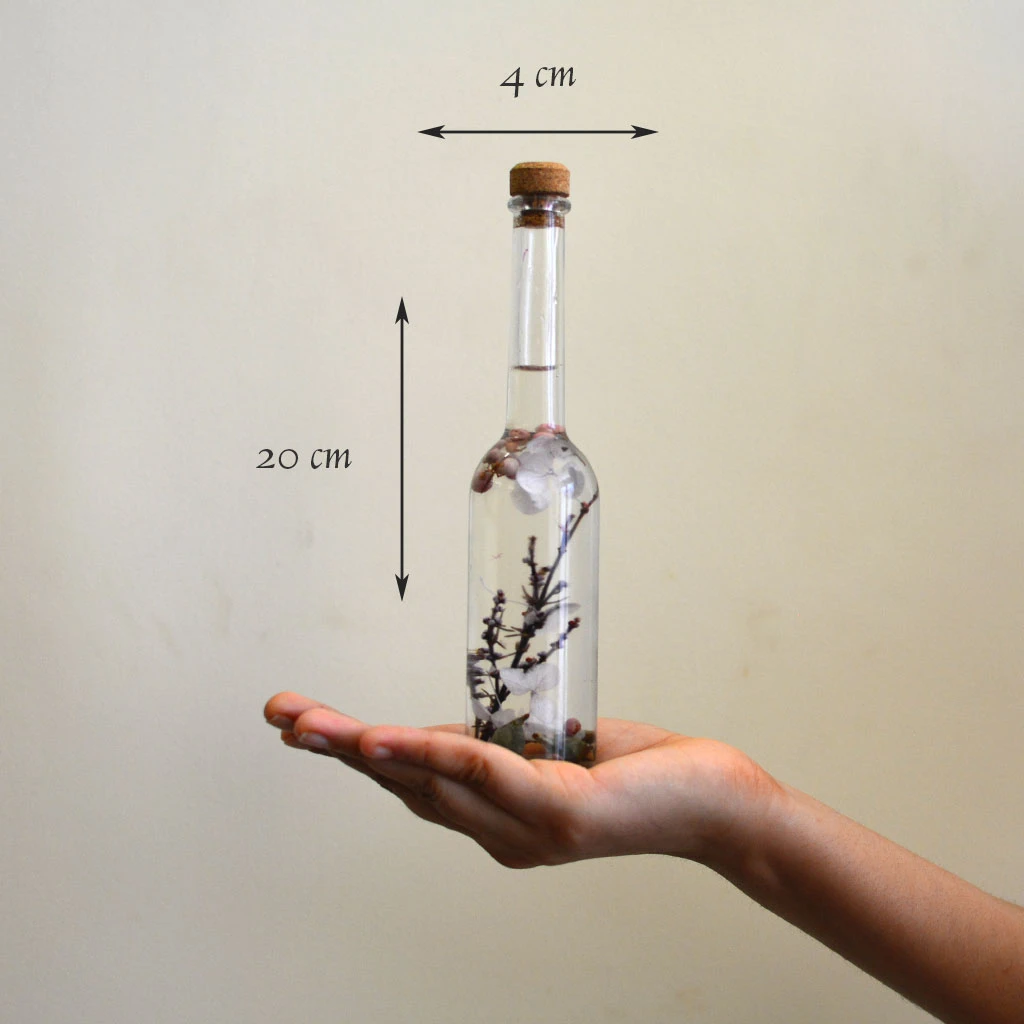 Material Used: Glass Bottle with Cork, Oil, Hydrangea, Baby Breath