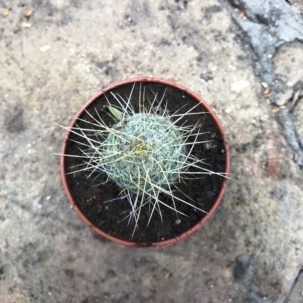 Mammillaria Nejapensis var. longispina or Silver arrow cactus is a slow-growing, dark green cactus that bears long, silvery-white spines and small, silvery-white hairs.