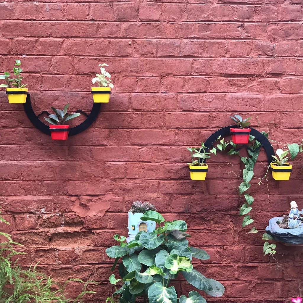 A beautiful stand made from an antique design which you can be hung on your wall. This stand, coming with square planters looks perfect indoors or outdoors.