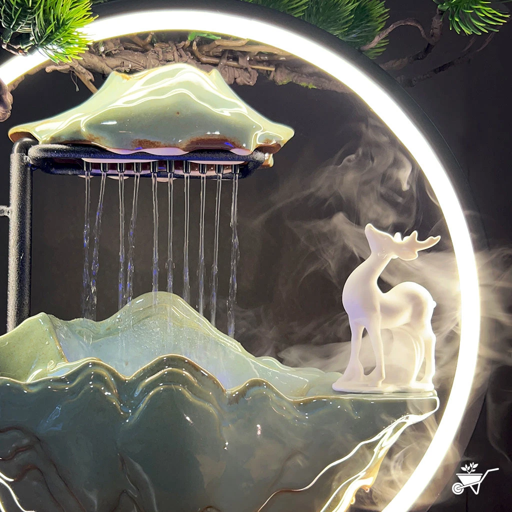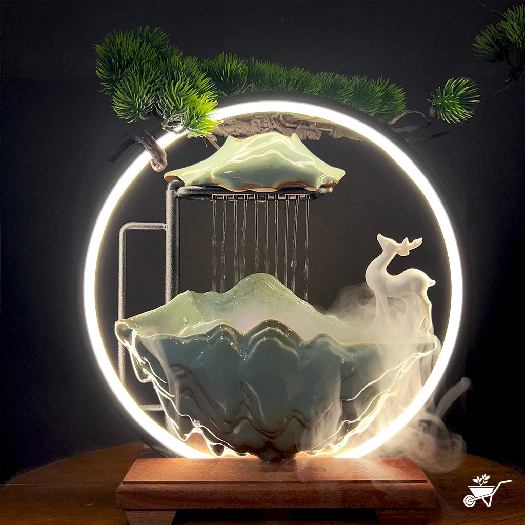 Material used : Ceramic Statue, Ceramic Water Holder, LED Light, Wooden Stand, Artificial Bonsai for LED, Water Pump, Atomizer