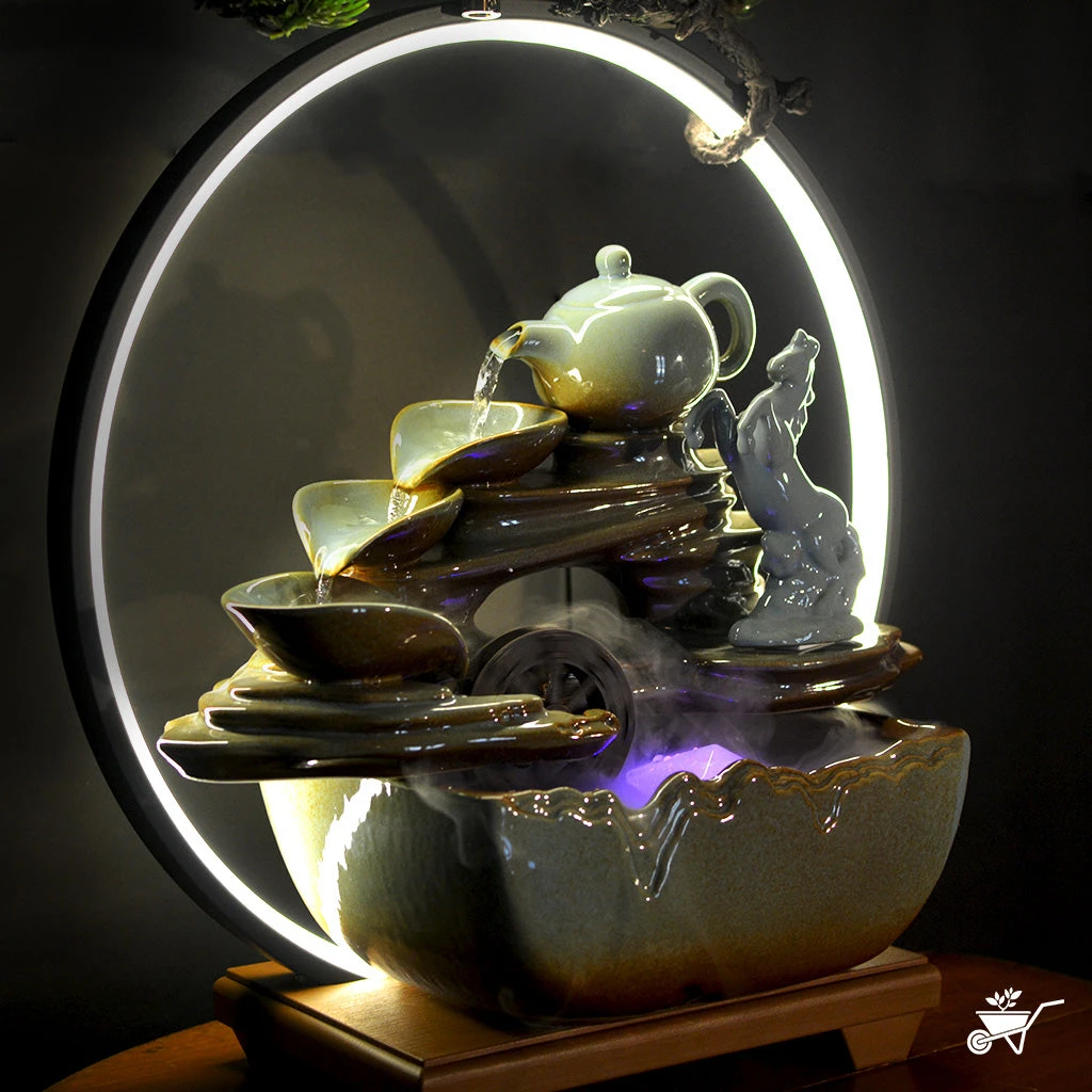 Material used : Ceramic Statue, Ceramic Water Holder, LED Light, Plastic Stand, Artificial Bonsai for LED, Water Pump, Atomizer, Ceramic Diffuser