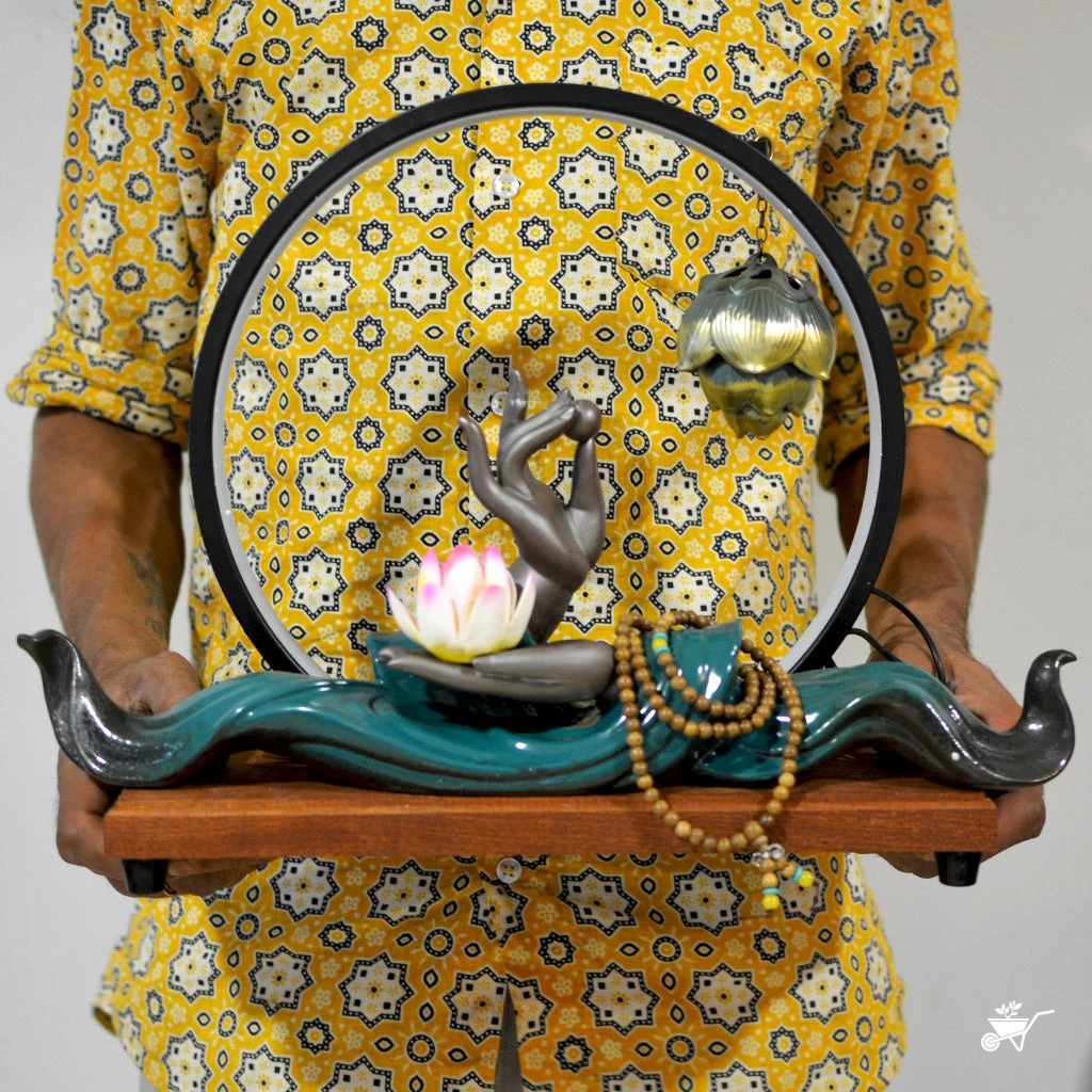 Material used : Ceramic Statue, LED Light, Wooden Stand, Ceramic Lotus Stand, Hanging Incense Diffuser