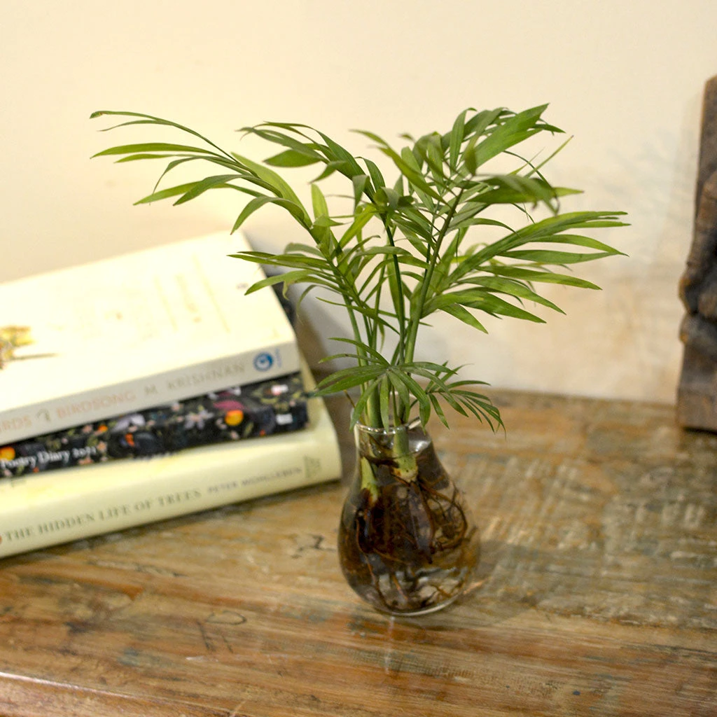 An urban green solution if there ever was one, a water terrarium is a simple and confined little ecosystem that is very pretty to look at and brings some natural grace to your home decor! Keep it simple with our beautiful parlour palm terrarium which showcases the beauty of the roots as well. Our water terrariums are carefully curated and are extremely low maintenance. Green up your home with these little beauties by placing them in your favourite corners!