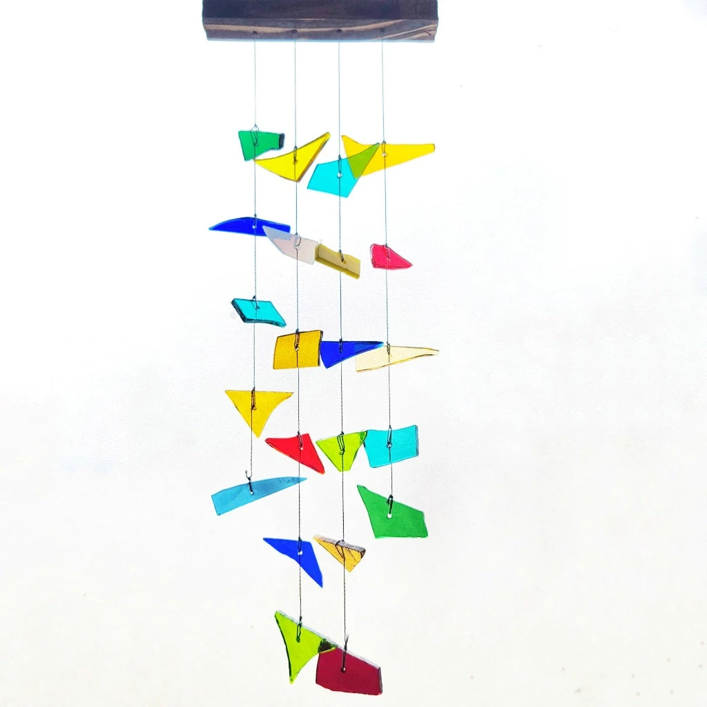 Bring colour and joy to your space with the Rainbow Stained Glass Windchime. Hand‑cut and polished glass pieces create a vibrant display that catches the light beautifully, while producing a gentle, uplifting chime in the breeze.