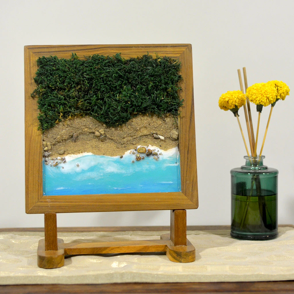 Ingredients : Preserved Sheet Moss, Resin, Pebbles, Sand, Sea Shells