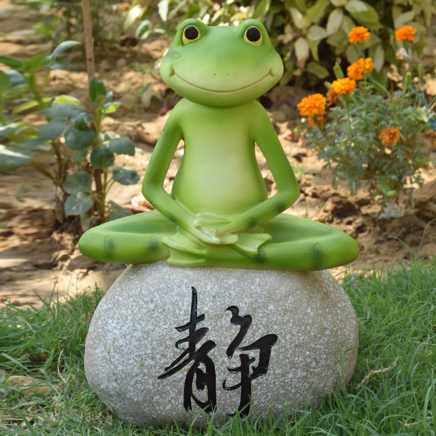 Set of 2 : Frog sitting on stone for Feng Shui for luck, wealth, happiness for your home, balcony or garden. This handsome frog toad comfortably sitting on a stone is very colorful and animated and will surely bring a smile to every one’s face. It will brighten up any corner of surroundings. This is made of very tough polyresin with special coating of paint to make it weather resistant. Hence, it can be kept inside or outside your home in kids room, living room, garden, balcony, terrace or any place and its colors will not fade because of sunlight or dust or water or pollution. Excellent gift.