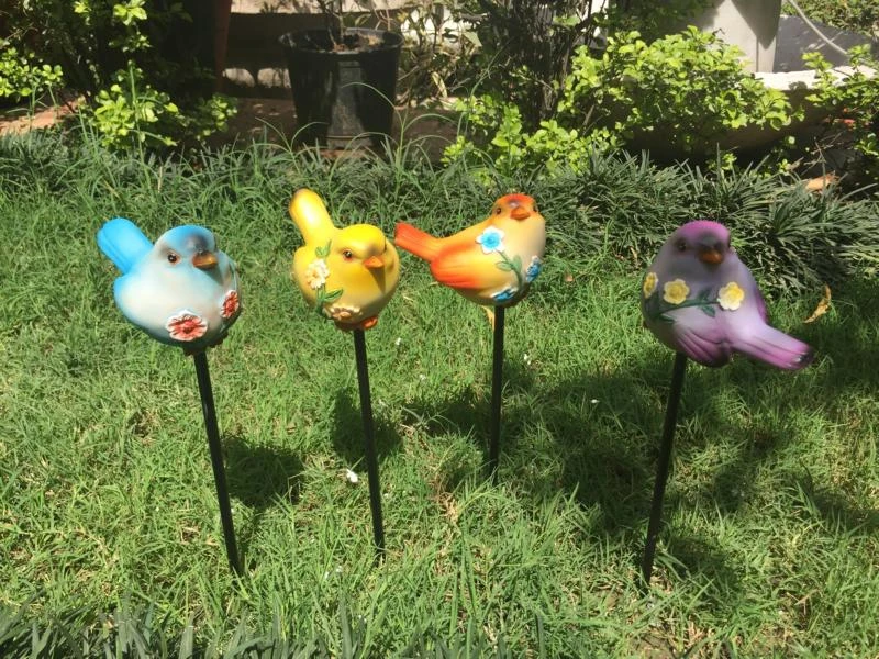 Set of 4 beautiful resin bird sticks / stakes are a must have. You can put them in a vase or planter to decorate. These are made of tough resin with special coating of paint on them to make them weather resistant. Its color doesn’t fade. Perfect garden sticks or stakes for gifting.