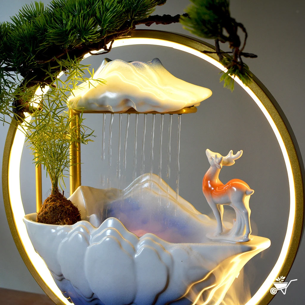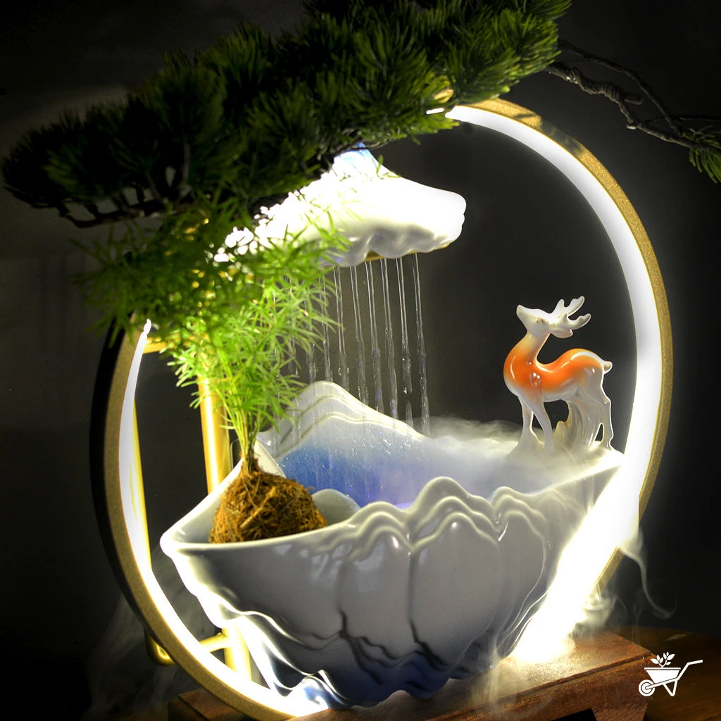 Material used : Ceramic Statue, Ceramic Water Holder, LED Light, Wooden Stand, Artificial Bonsai for LED, Water Pump, Atomizer