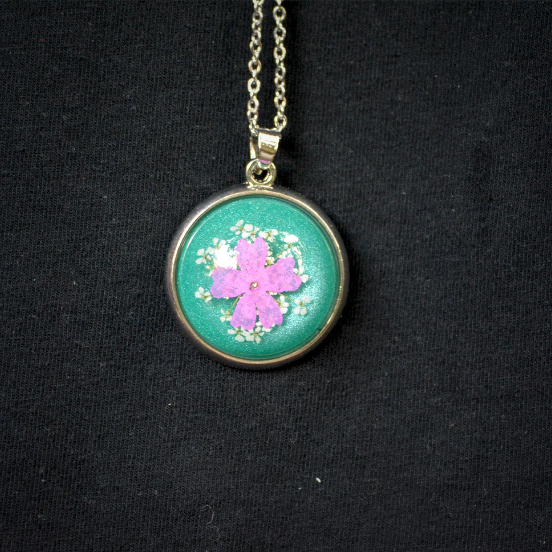 Material – Silver chain, Resin, Dried Flower