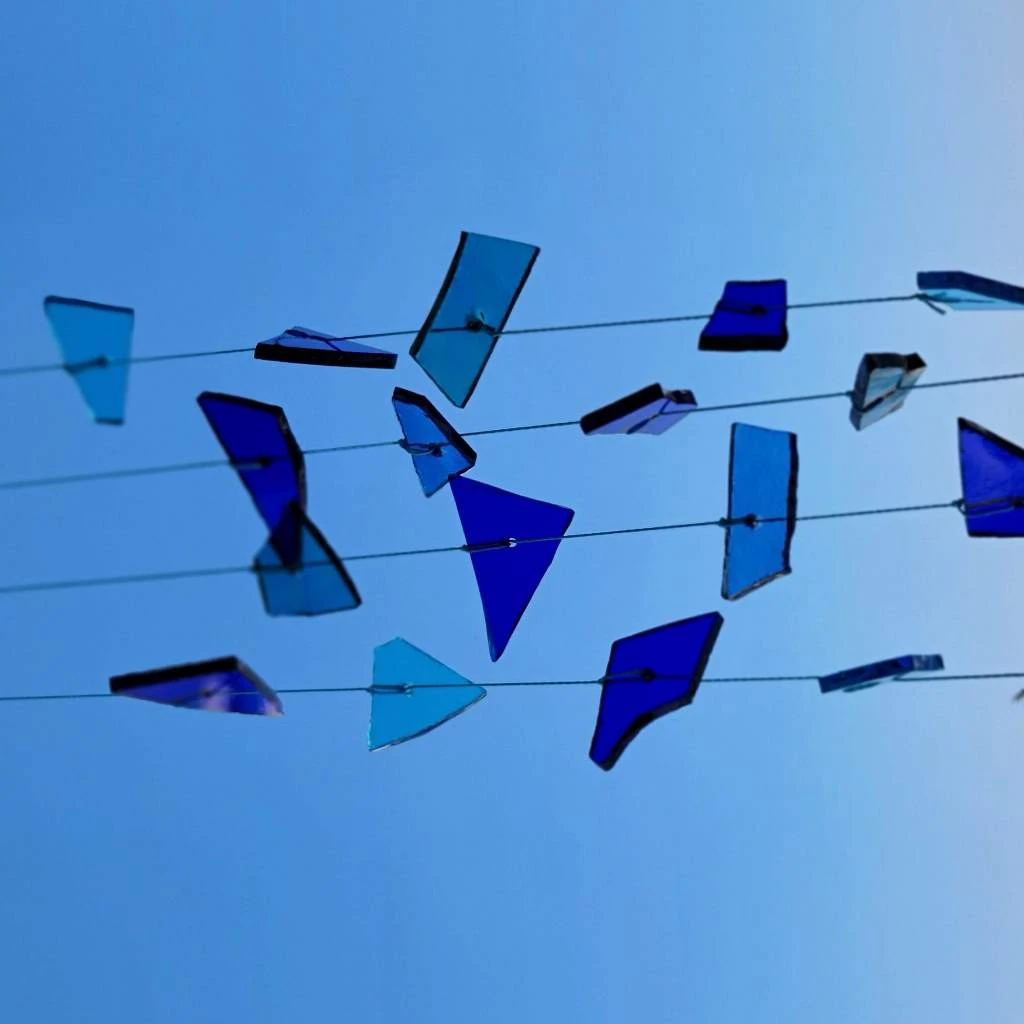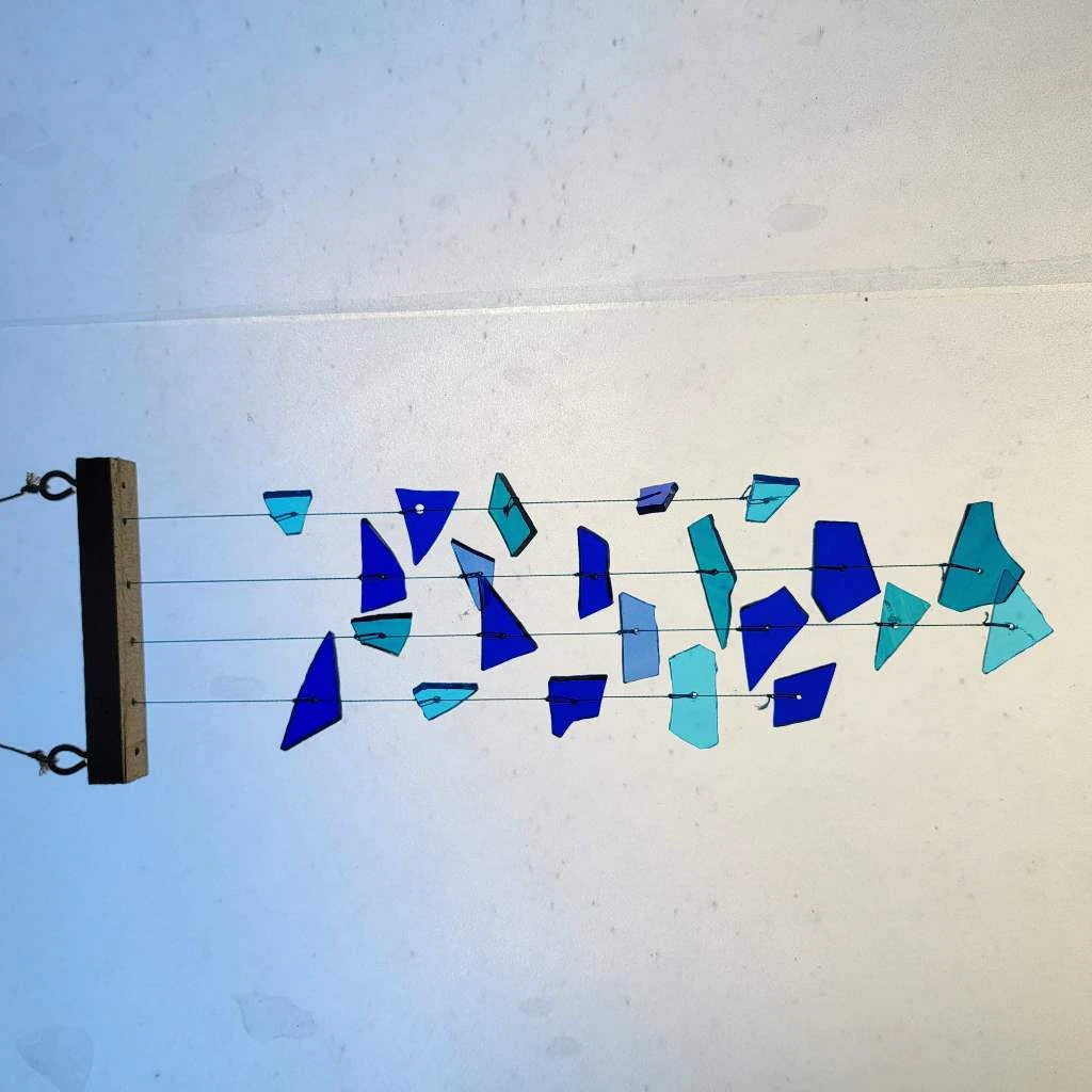 Crafted from more than 20 pieces of hand‑cut glass salvaged from liquor bottles, the Upcycled Glass Windchime is a sustainable statement piece that brings soothing sound and eco‑friendly charm to any setting.