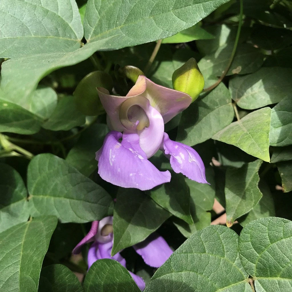 Vigna speciosa is an outstanding and exotic looking, fast growing vine with a distinctive curled shape fragrant flowers,giving rise to the common names corkscrew vine, snail vine, snail creeper.