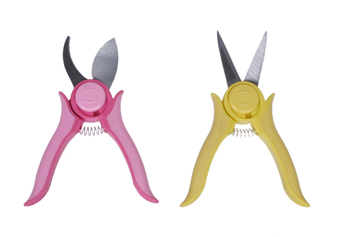 Mini Pruning Shears and Trimming shears with Micro-tip blades are ideal for flowers gardening, bonsai, house plants, and floral arranging. Stainless Steel Blade for Long Lasting Performance. Well designed and Soft handle with non-slip TPR grips for Safe and Comfort operation in long time use. Easy and Safety Lock system by pushing the lock up and down. The Bypass action makes it ideal for cutting tough living plants professionally, cutting cleanly without crushing branches or tearing bark. Specification of Pink Pruner with smart lock. –